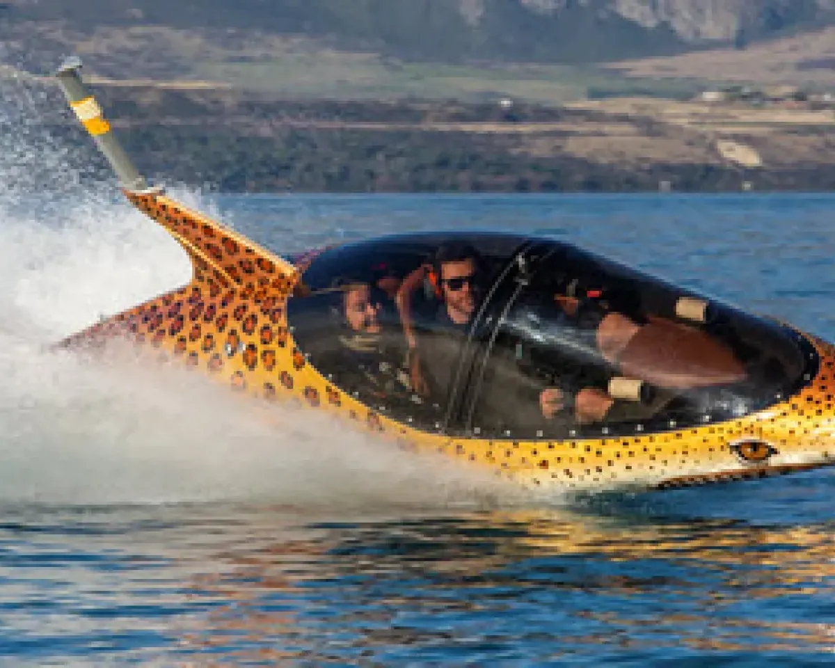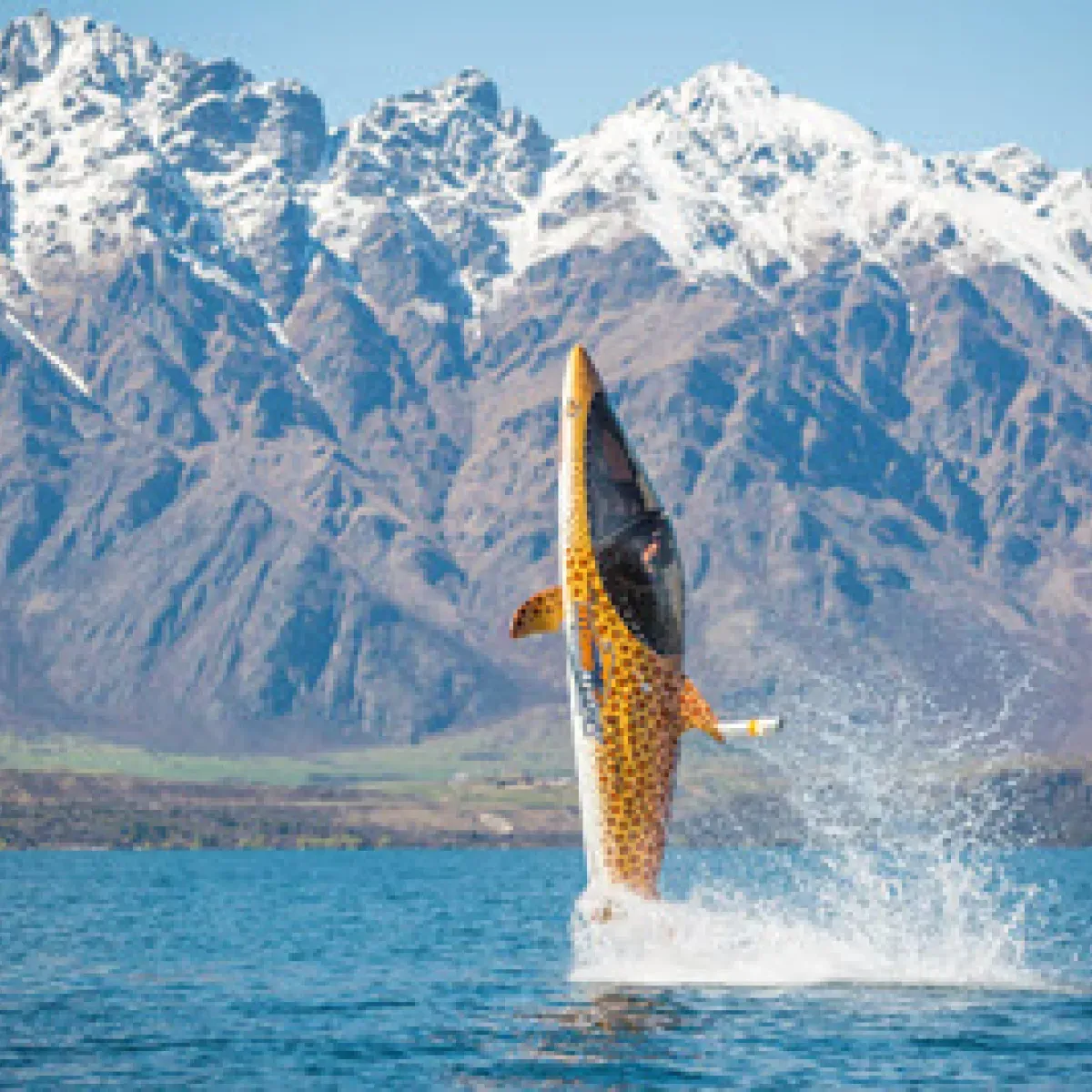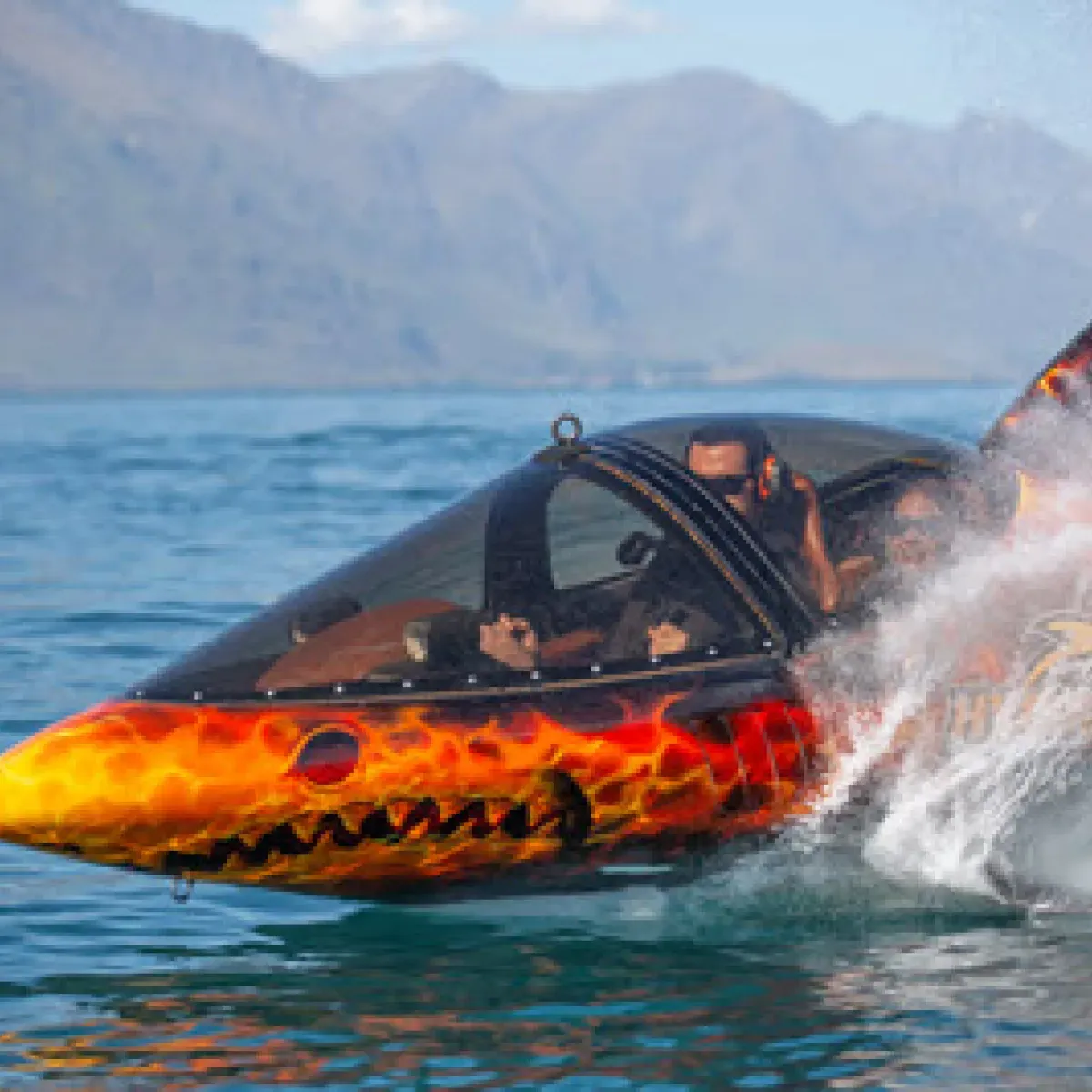Blast across the crystal‑clear waters of Lake Wakatipu at up to 80 kph, then dive beneath the surface at 40 kph in Hydro Attack’s one‑of‑a‑kind semi‑submersible shark. This one‑on‑one, 15‑minute adrenaline ride puts you in the state‑of‑the‑art cockpit alongside one of our expert pilots as you skim, dive, roll and launch skyward in a machine that feels like a cross between a fighter jet and a torpedo.