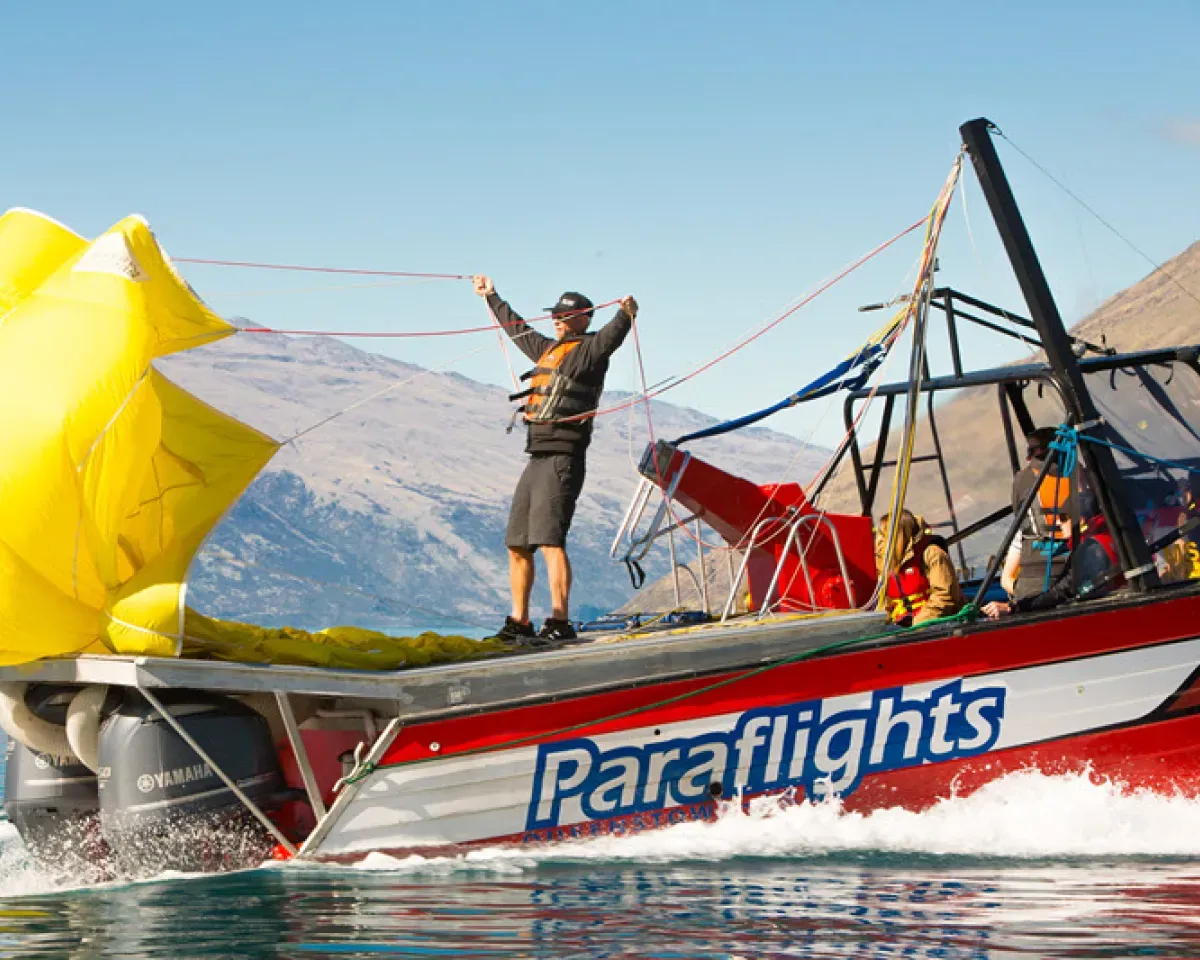 Come and experience the flight of a lifetime as you soar high above the crystal-clear waters of Lake Wakatipu, taking in breathtaking views of mountains and shoreline. You’ll take off and land gently on our purpose-built parasailing boat, The Red Dragon. This is an absolute must-do adventure during your time in Queenstown!